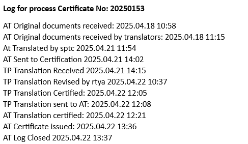The original document was delivered to us through our official channels on April 18th, 2025. The information was verified with the owner of the documents. The owner of the document is solely responsible for the use of this original document and translation.