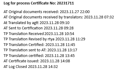 - This certificate is located ONLY in our private servers, for example: http://www.altotranslations.com/CERTIFICATENUMBER